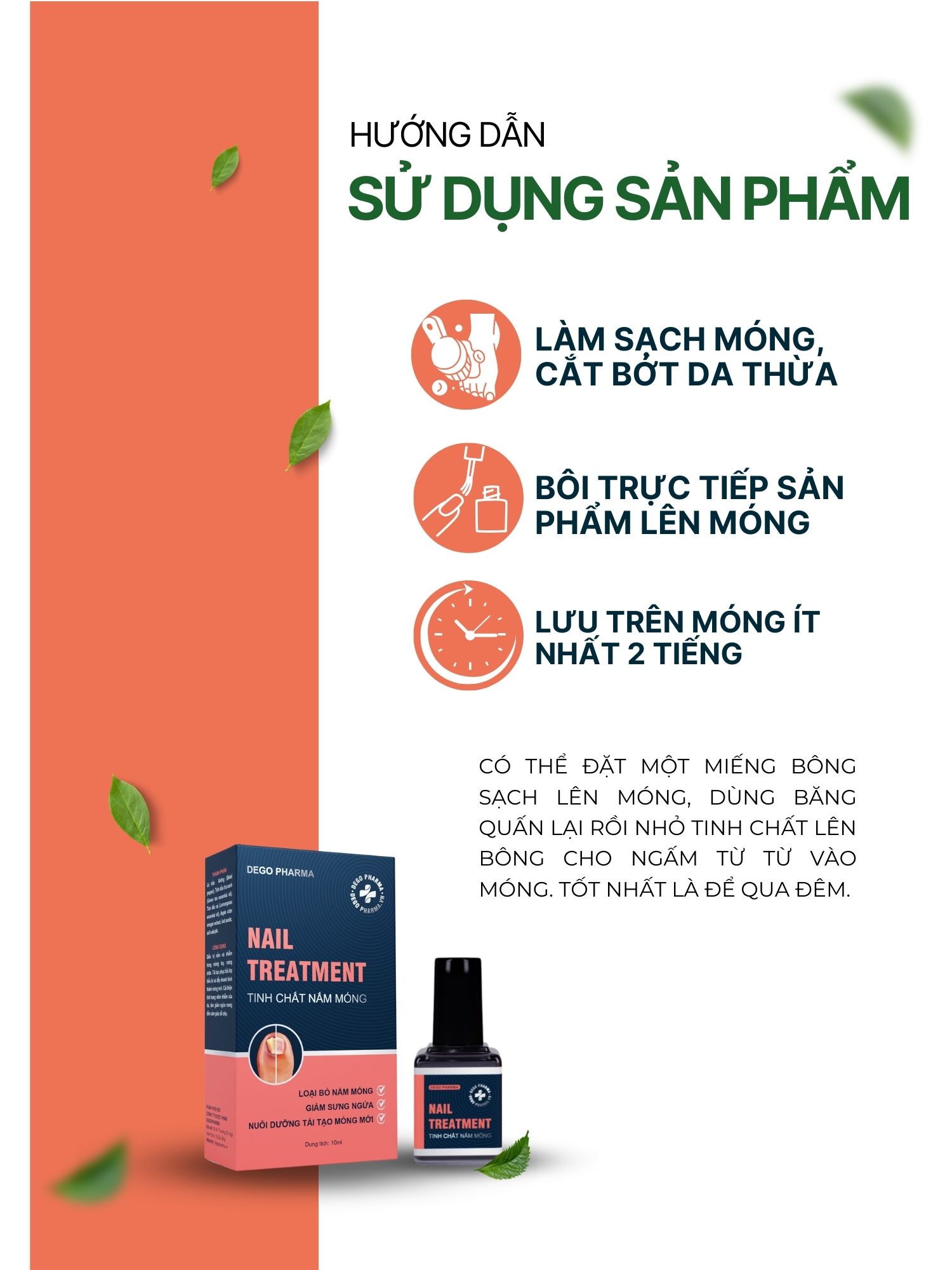 Bước 2: Bôi trực tiếp sản phẩm lên móng hoặc đặt một miếng bông sạch lên móng dùng băng quấn lại rồi nhỏ thuốc lên bông cho ngấm xuống từ từ vào móng. Bôi 1 lần/ngày