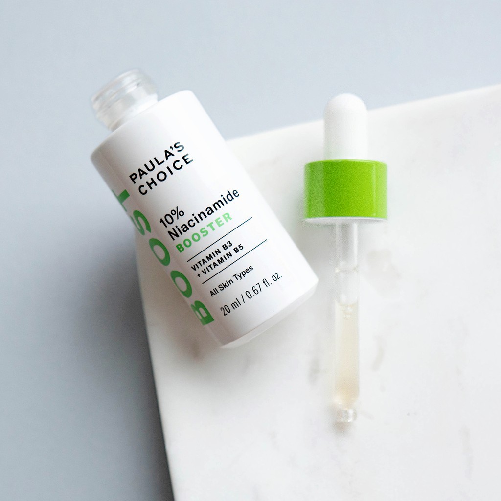 Tinh Chất Se Khít Lỗ Chân Lông Và Làm Sáng Da Paula’s Choice 10% Niacinamide Booster Xuất xứ: Sản xuất tại Mỹ Khái niệm Niacinamide (hay còn gọi là Nicotinamide) xuất hiện với tần suất dày đặc trong ngành công nghiệp sản xuất mỹ phẩm. Hoạt chất này là dẫn xuất của vitamin B3 – nguồn gốc tự nhiên, an toàn và lành tính. Chúng có tác dụng kích thích sản sinh ceramide – một hoạt chất cấu thành nên “lớp rào” chắn chắn bảo vệ da khỏi sự xâm nhập của vi khuẩn có hại hay các yếu tố ngoại cảnh từ môi trường. Từ đó, niacinamide kích thích các hoạt động của tế bào, thúc đẩy tuần hoàn máu đồng thời kiểm soát hoạt động tuyến bã nhờn, khắc phục tình trạng lỗ chân lông phình đại. 10% Niacinamide Booster là sự lựa chọn hoàn hảo nếu bạn đang mong muốn tìm sản phẩm có tác dụng tương tự như vậy.