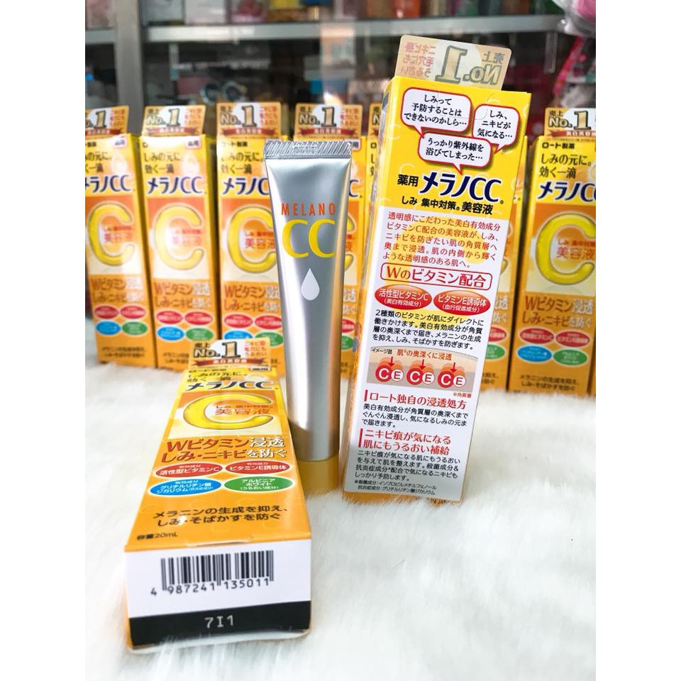 Cc melano rất hiệu quả trong việc ngăn tàn nhang, giảm sự sản sinh sắc tố melanin – nguyên nhân gây ra vết thâm. Ngoài ra, Melano CC còn bổ sung vitamin E cho da, giúp da khỏe mạnh, giữ ẩm, ngăn mụn và làm da sáng ra từ bên trong.