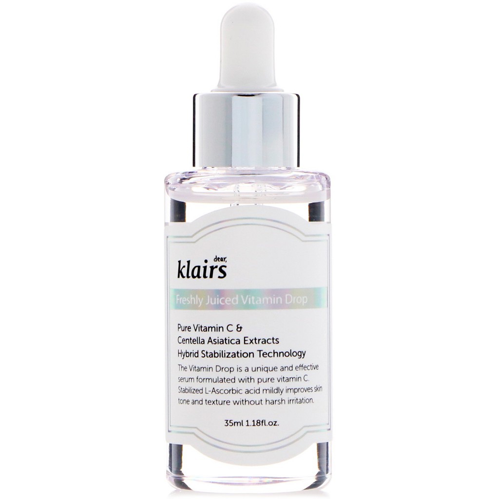 🌸 THÀNH PHẦN VÀ CÔNG DỤNG:: - Tinh Chất Dear Klairs Dưỡng Sáng Và Làm Đều Màu Da Freshly Juiced Vitamin Drop 35ml giúp dưỡng sáng và làm dịu làn da tổn thương, giảm kích ứng và tăng cường lớp màng hàng rào bảo vệ da. - Chiết xuất từ vitamin C tinh khiết giúp phục hồi, làm sáng màu và trẻ hóa làn da mà không hề lo kích ứng da, kể cả da nhạy cảm. - Vitamin C sản xuất collagen, hết sức cần thiết cho sự lành vết thương, sự mạnh khỏe của nướu răng, và ngăn ngừa các mảng bầm ở da, Vitamin C cũng là một chất dinh dưỡng ngăn ngừa oxy hóa rất quan trọng. - Các hợp chất có trong lá cây Centella Asiatica giúp tăng cường chất ngăn ngừa oxy hóa và thúc đẩy sự phát triển và tái tạo làn da mới. Các hoạt chất của Centella Asiatica là những saponin (axit asiatic, axit brahmic) có tác dụng giúp các mô liên kết tái tạo nhanh chóng, giúp tổn thương mau lành và lên da non, giúp giảm mụn hiệu quả. - Sản phẩm có kết cấu dạng lỏng, không mùi thẩm thấu nhanh chóng vào da. Sau đó để lại lớp màng căng bóng, khỏe mạnh mà không gây cảm giác khó chịu, nhờn dính trên da.