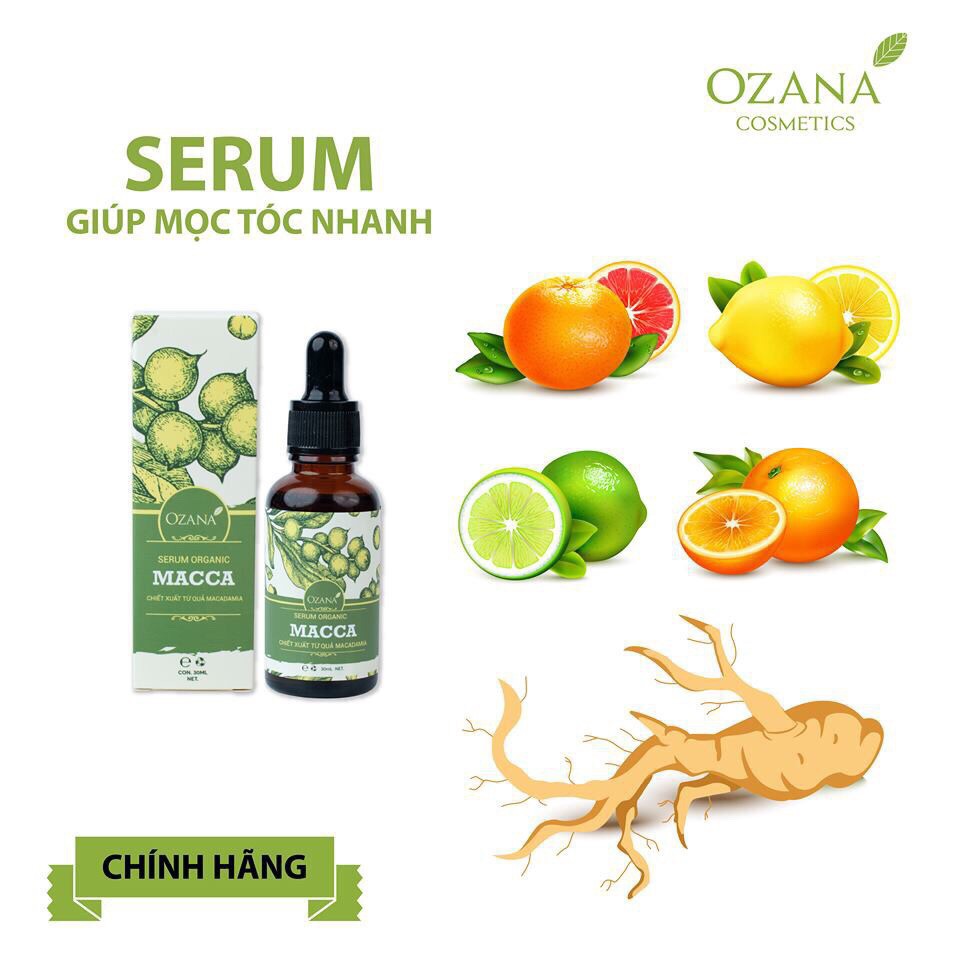 Mùi hương thì đúng là giống y như dùng thảo dược đun lên vậy, không gây kích ứng cho da và rất sảng khoái Serum OZANA hữu cơ với thành phần chính được chiết xuất từ tinh dầu hạt Macca giúp kích thích tóc mọc nhanh giúp làm sạch lỗ chân lông và làm cân bằng độ ẩm trên da đầu Công dụng: