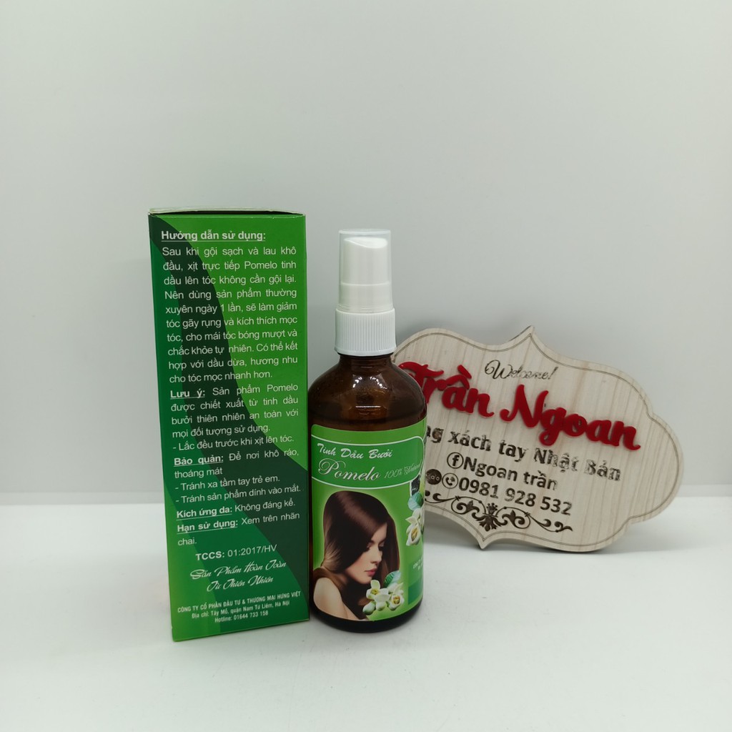 Sau khi gội sạch và lau khô đầu, xịt trực tiếp Pomelo tinh dầu lên tóc không cần gội lại. Nên dùng sản phẩm thường xuyên ngày 1 lần, sẽ làm giảm tóc gãy rụng và kích thích mọc tóc, cho mái tóc bóng mượt và chắc khỏe tự nhiên. Có thể kết hợp với dầu dừa, hương nhu, cho tóc mọc nhanh hơn.