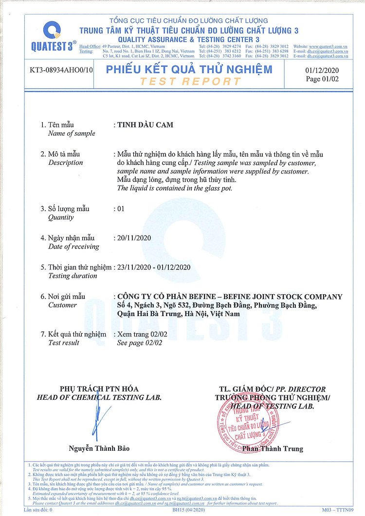 Mô tả mùi hương: Hương cam đặc trưng, tươi mát