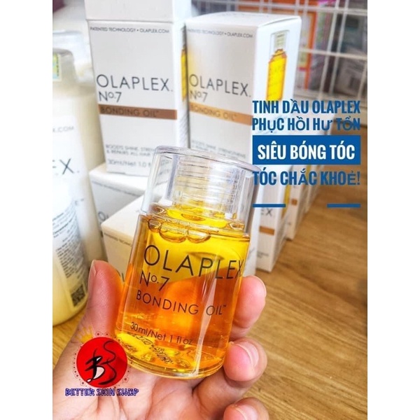 DẦU DƯỠNG TÓC OLAPLEX No.7 - một sản phẩm được cấp bằng sáng chế, giúp phục hồi và chữa trị mọi loại tóc hư tổn! Sản phẩm nổi tiếng trên toàn thế giới và được các Salon tóc dùng cho khách hàng của mình thôi ạ! Mình đã từng ra salon làm tóc và thấy ở tiệm dán câu slogan: “ Olaplex - sự phát minh vĩ đại của ngành tóc” 👉 Olaplex chính là bí quyết! Tại sao đi làm tóc về ai cũng cảm thấy tóc suôn mềm hơn, chắc khoẻ hơn là vậy đó ạ!
