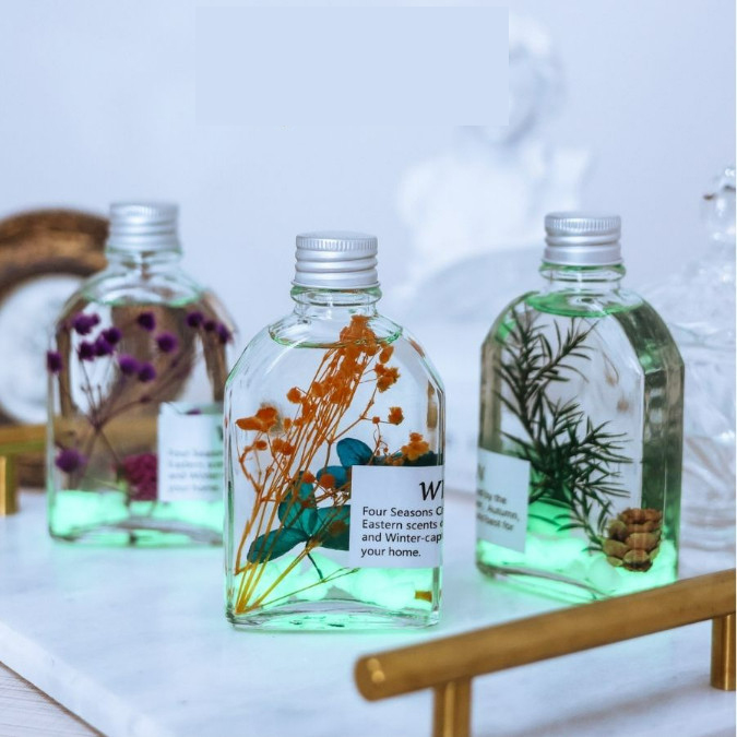 Tinh Dầu Thơm Phòng Que Gỗ Phát Sáng Ban Đêm, Lọ Khuếch Tán Xông Phòng, Khử Mùi Không Khí 100ml Chai Dẹt