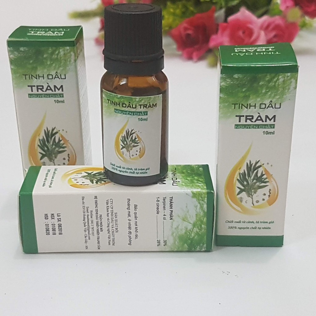 Tinh dầu tràm 10ml chứa thành phần chủ yếu là Cineol một chất hữu cơ tự nhiên tạo nên tác dụng của dầu tràm. Tinh dầu tràm nguyên chất Thanh Tâm một giải pháp phòng và chữa được nhiều bệnh ốm vặt cho cả trẻ nhỏ và người lớn luôn cần có của mỗi gia đình. Công dụng của tinh dầu tràm 10ml Phòng và hỗ trợ điều trị bệnh về đường hô hấp Dầu tràm giúp giảm ho, ngăn ngừa và giảm các triệu chứng của bệnh đường hô hấp viêm thanh quản, phế quản… đặc biệt là trẻ sơ sinh và trẻ nhỏ. Khi bị nghẹt mũi có thể ngửi tinh dầu tràm để thông mũi, giảm triệu trứng sổ mũi. Tinh dầu tràm giúp làm đẹp da Nhờ tính sát khuẩn, làm se nên tinh dầu tràm giúp trị mụn trứng cá, mụn mủ, viêm da, nhiễm nấm da, vảy nến, lang ben…Vậy nên dầu tràm cũng là thành phần hoàn hảo bổ sung cho thói quen chăm sóc da hàng ngày giúp da săn chắc và láng mịn. Giảm đau nhanh bằng tinh dầu tràm Tinh dầu tràm có tác dụng giảm đau hiệu quả trong đau dầu, đau cơ,…Xoa bóp dầu tràm ở vùng trán để giảm cơn đau đầu mà không cần dùng thuốc tây. Ngoài ra, tinh dầu tràm còn có tác dụng kháng viêm nên khi pha loãng cũng có thể giúp giảm bớt đau nhức từ cơ, viêm khớp. Dầu tràm luôn đồng hành cùng các vận động viên chuyên nghiệp, bất cứ ai cần sau khi vận động gắng sức. Trong nha khoa, dầu tràm còn được dùng để giảm đau sau khi nhổ răng. Chống viêm và kháng khuẩn Tinh dầu có tính chất đặc tính kháng khuẩn, sát trùng, chống viêm hiệu quả. Chúng được sử dụng để phòng và trị nhiễm trùng móng, nấm chân, mụn cóc, trị mẩn ngứa, sát khuẩn chống nhiễm trùng, phòng ngừa viêm lợi, loét miệng…. Trị liệu bằng hương thơm Tinh dầu được khuếch tán trong không khí mang lại hương thơm tươi mát giúp sát khuẩn, thanh lọc không khí, thư giãn, giảm mệt mỏi, nâng cao tinh thần,… và đuổi côn trùng. Ngoài ra khi hít tinh dầu tràm gió còn giảm tình trạng nghẹt mũi. Giảm co thắt cơ, chuột rút Tinh dầu tràm giúp giảm co thắt, giảm đau trong trường hợp chuột rút, co cơ bắp. Hãy pha loãng dầu tràm với dầu nền yêu thích sau đó dùng xoa bóp. Đuổi côn trùng và điều trị vết côn trùng cắn Một trong những tác dụng của loại tinh dầu này được yêu thích là đuổi côn trùng như muỗi, ruồi,… hiệu quả, khiến chúng tránh xa căn nhà của bạn. Ngoài ra có thể dùng để bôi lên vết côn trùng cắn để giảm sưng, giảm ngứa. Một số lưu ý khi sử dụng dầu Tràm Tinh dầu tràm 10 ml nguyên chất lành tính để sử dụng nhưng cũng cần phải lưu ý trong một số trường hợp sau: Hãy thử độ kích ứng với dầu tràm và quan sát 24h trước khi dùng trên da. Ngưng sử dụng khi xảy ra tình trạng kích ứng. Người bị hen suyễn không nên dùng vì ở liều cao quá mức phép có thể gây ra cơn hen.