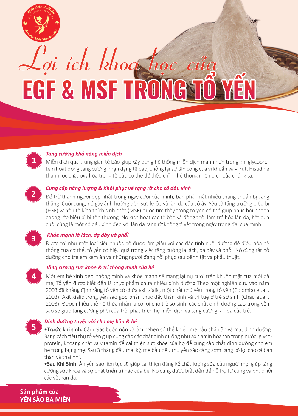 Lợi ích khoa học của EGF & MSF trong tổ yến: