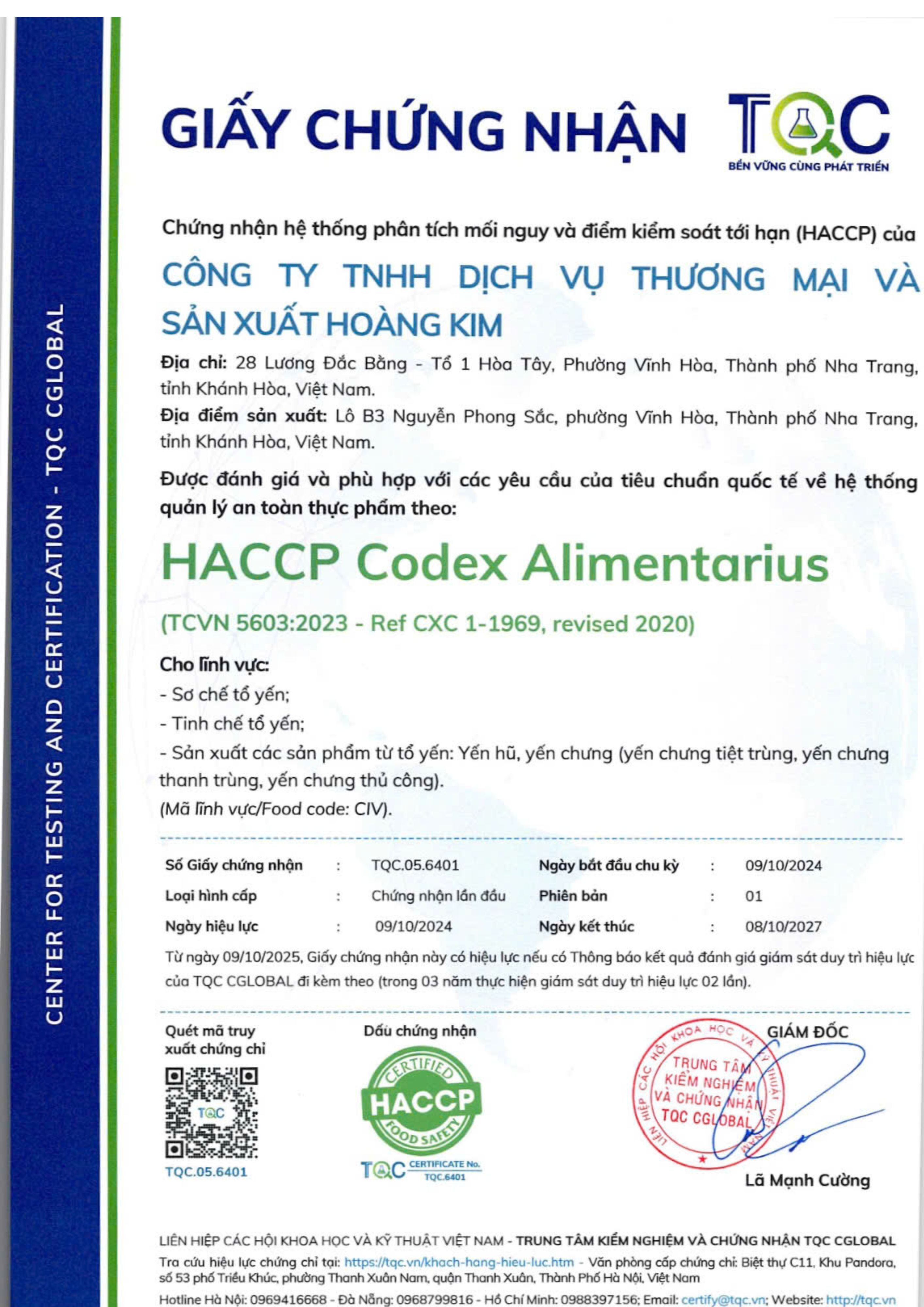 | Thương hiệu | Yến Sào Hoàng Kim |