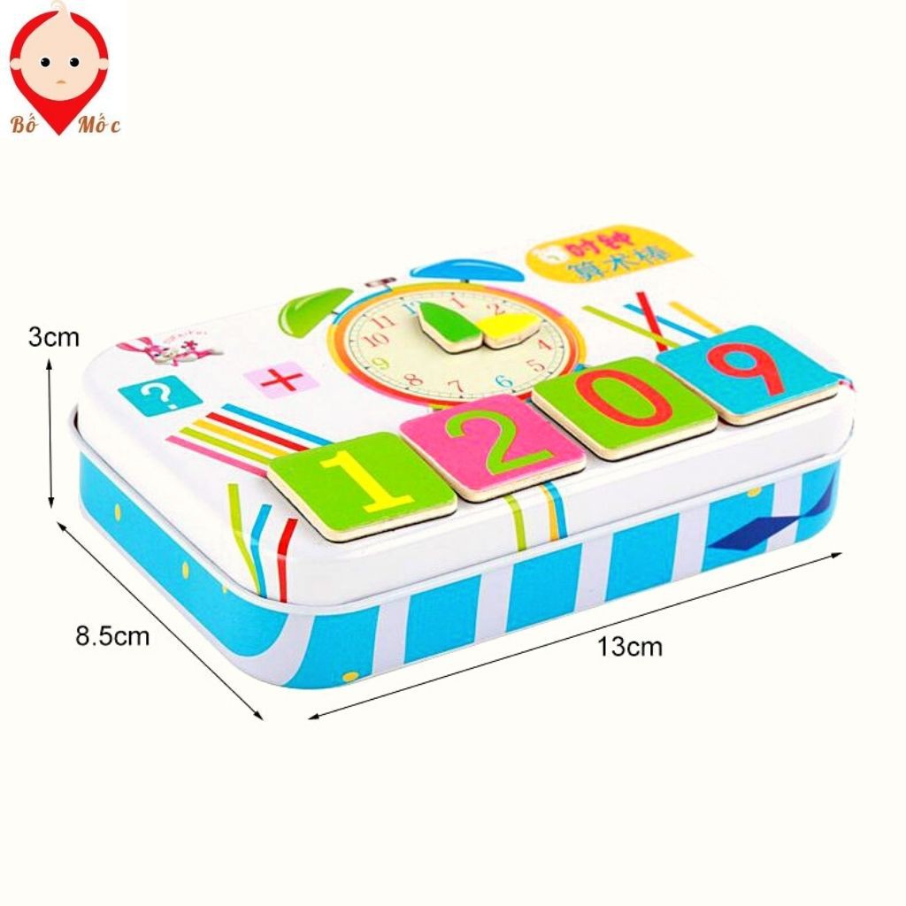 + Độ tuổi phù hợp: trẻ từ 3 tuổi trở lên. Lưu ý có các bộ phận nhỏ. + Bao gồm: 01 Hộp sắt + 50 que tính chia 4 màu + 1 Bộ chữ số + Dấu phép tính + Thiết kế: Dạng hộp sắt gọn đẹp, dễ dàng cất gọn khi không sử dụng - Kích thước: 13.0*8.5*4.0 cm - Khối lượng: 0.3kg