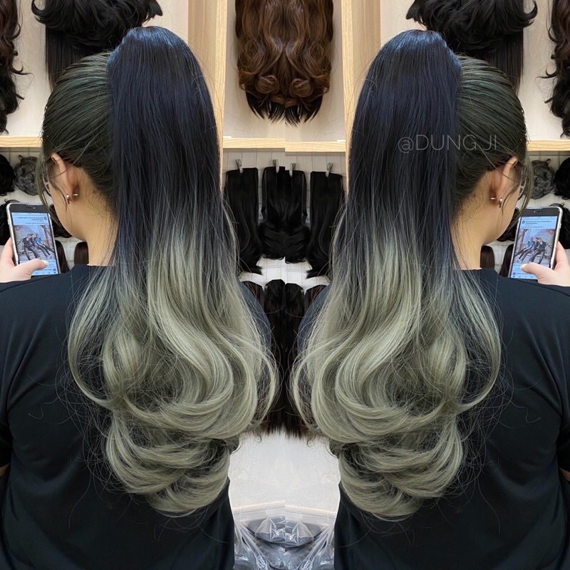 Phụ Kiện Thời Trang > Phụ kiện tóc > Tóc giả & Tóc nối || Tóc giả ngoặm omper xoăn xám xanh thời trang ❇️FREESHIP ❇️