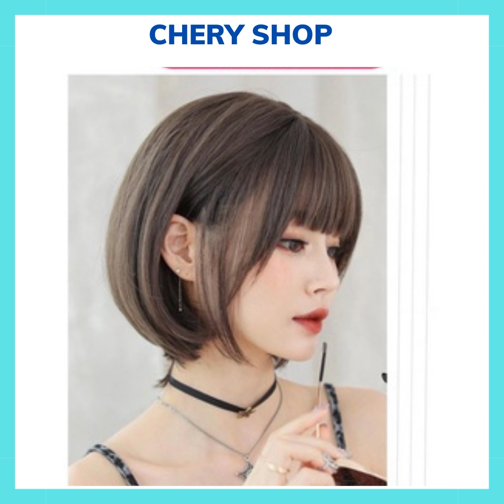 Giới thiệu Tóc giả nguyên đầu ngắn cúp cổ cao cấp tặng kèm lưới trùm mã DLA228