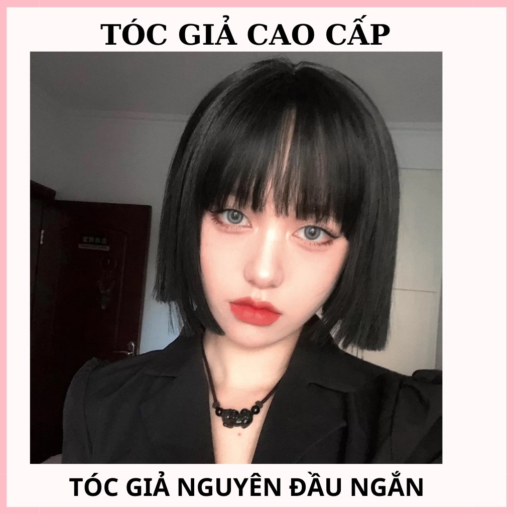 Giới thiệu Tóc giả nguyên đầu ngắn đuôi thẳng ngang, tặng kèm lưới trùm, MÃ Dl116