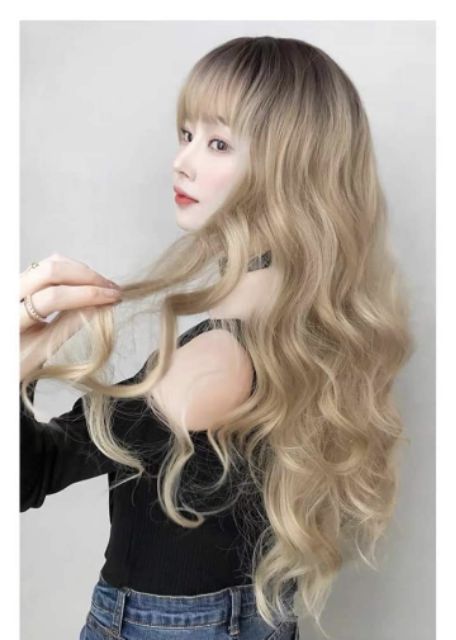Giới thiệu Tóc giả nguyên đầu xoăn sóng ❤️❤️ FREESHIP ❤️❤️ nguyên đầu xoăn xù sóng chân đen vàng tây