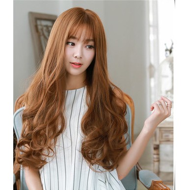 Phụ Kiện Thời Trang > Phụ kiện tóc > Tóc giả & Tóc nối || Bộ Tóc Xoăn Lọn Mái Thưa Nâu Vàng MHS33