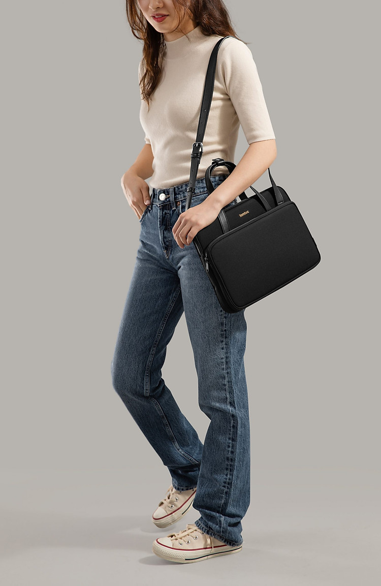Tomtoc đã và đang rất thành công với chiếc túi xách Briefcase Premium H21 với ứng dụng công nghệ chống sốc vành viền đáy là Corner Armor và Bottom Armor kết hợp với thiết kế “mềm mại”, sang trọng và quyến rũ, H21 có thiết kế thích hợp khi khoác cùng những bộ quần áo style lịch lãm khi đến văn phòng làm việc hay gặp gỡ đối tác. Với sự thành công của H21 khách hàng lại tiếp tục tham lam mong muốn H21 có thể có được một quai đeo tiện lợi hơn thì hoàn hảo biết nhường nào.