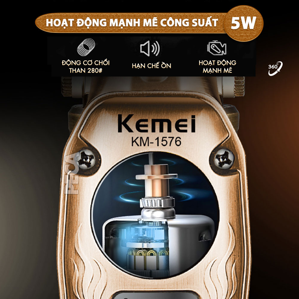 Hiệu suất cao: Động cơ được thiết kế để cung cấp đủ lực cắt, giúp máy hoạt động trơn tru ngay cả khi cắt tóc dày và xoăn. Điều này làm giảm tình trạng kẹt tóc và giúp việc cắt tóc diễn ra nhanh chóng, chính xác.
