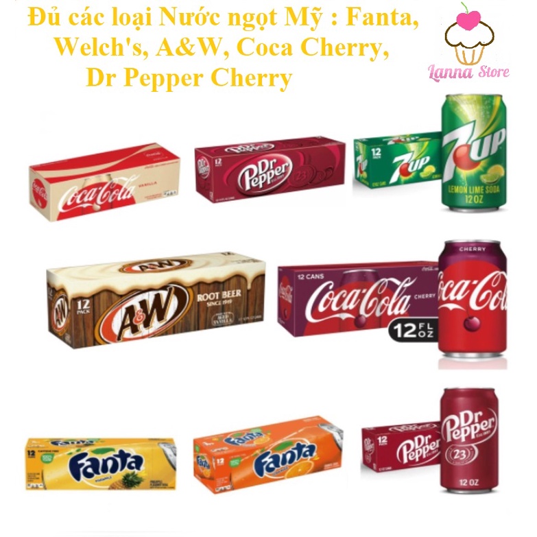 [Tổng Hợp] Coca cherry , 7 Up, Xá Xị A&W , Welchs Nho , Coca Cola Original Lon 355ml - Mỹ Xuất xứ: Mỹ Hạn sử dụng: 1 năm kể từ ngày sản xuất