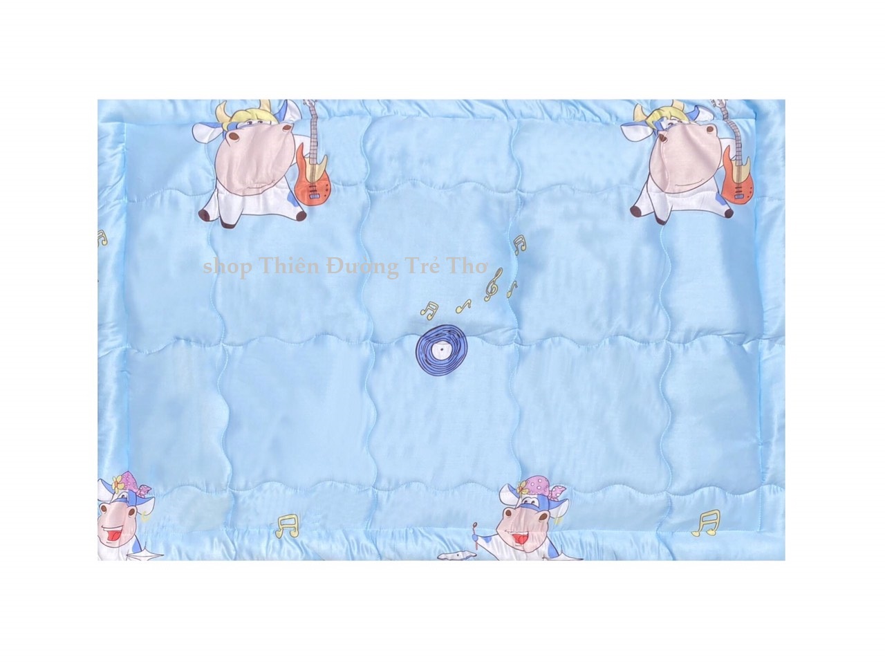 Ở giữa là lớp gòn sữa mềm mịn, có độ phòng vừa phải tạo cảm giác êm ái cho bé. Bên dưới có 1 lớp chống thấm để ngăn việc thấm ướt giường.