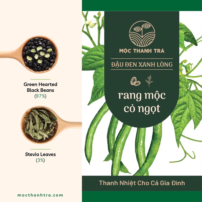 Thành phần Đậu đen xanh lòng rang mộc 97% Cỏ ngọt 3%