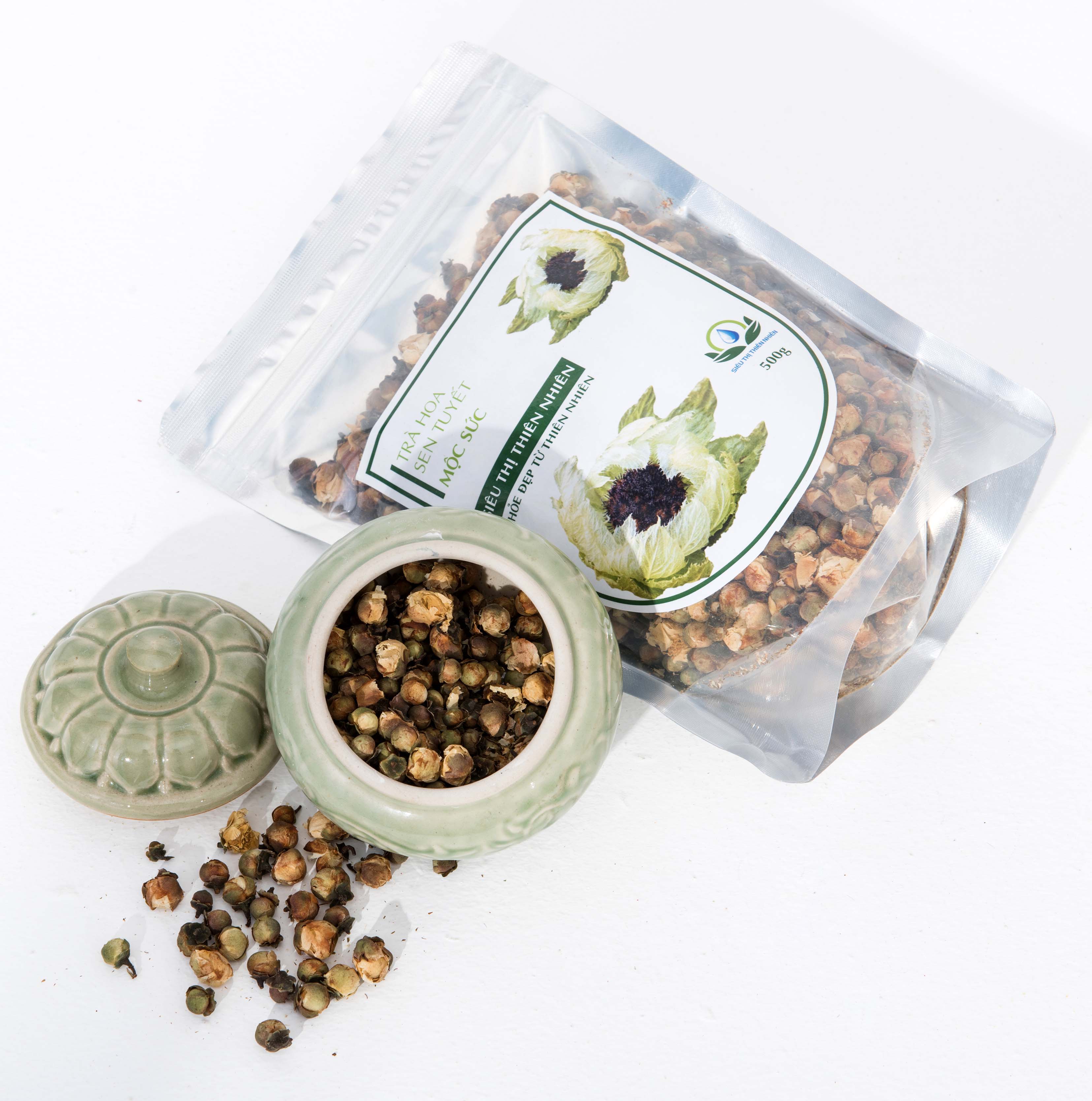 - Được tuyển chọn kỹ càng đưa qua máy sấy khô để chế biến theo công nghệ sạch, trà hoa sen tuyết mộc sắc đảm bảo an toàn, hiệu quả đáp ứng đầy đủ tiêu chuẩn vệ sinh an toàn thực phẩm theo quy định. Không chất bảo quản, không phẩm màu, không chất phụ gia.