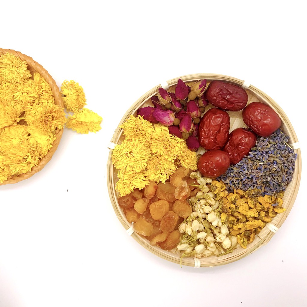 Trà Hoa Thư Giãn Tâm An giúp thư giãn, an thần tiêu hóa tốt ( hoa hồng, táo đỏ, long nhãn, oải hương,..)