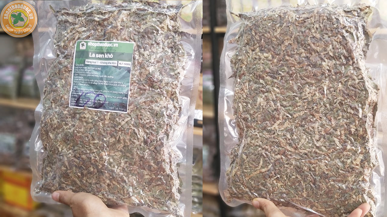Hướng dẫn sử dụng | Lá sen khô được sử dụng như một loại trà, có thể cho thêm vài cánh hoa nhài, hoa hồng hoặc lá húng quế để làm tăng hương vị trà.Một dạng dùng kháclà sắcnước uống. Cáchsắc nước lá sennhư sau:Dùng 15-20g lá sen khô thái sợi bỏ vào ấm nước, rửa sạch, sau đó cho thêm 2l nước, đun sôi, đợi khoảng 5p tắt bếp để nguội là có thể dùng được.Lưu ý:nên dùng lá sen trước hoặc sau khi ăn ít nhất 45p để không làm ảnh hưởng đến quá trình tiêu hóa. |