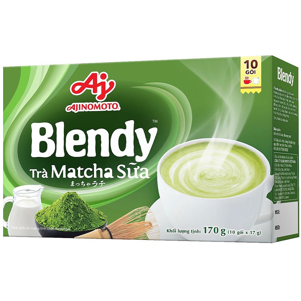 Tất cả sản phẩm của dòng thức uống hòa tan dạng bột Blendy sẽ cho bạn những trải nghiệm mới về hương vị trà sữa, mang lại giá trị thư thái cho tâm hồn và lợi ích cho sức khỏe. Giờ đây, bạn có thể dễ dàng tận hưởng cảm giác ngọt ngào thư thái mà Blendy đem đến ngay tại nhà cùng với gia đình mình hoặc tại cơ quan làm việc. Một sản phẩm chất lượng Nhật Bản đến từ Công ty Ajinomoto Việt Nam. Uống nóng: Cho 1 gói Trà Matcha Sữa vào 70ml nước nóng, khuấy đều và thưởng thức Uống lạnh: Cho 1 gói Trà Matcha Sữa vào 40ml nước nóng, khuấy đều, thêm đá và thưởng thức. Bạn có thể kết hợp thêm trân châu để thưởng thức một ly trà sữa như ngoài tiệm.