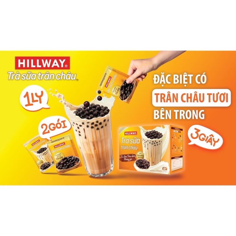 GIỚI THIỆU SẢN PHẨM HILLWAY là Trà sữa hoà tan có gói TRÂN CHÂU TƯƠI bên trong, lần đầu tiên có mặt tại Việt Nam. 1 HỘP gồm: 8 gói Trà sữa x 22g và 8 gói Trân châu x 30g. Chỉ với 1 phút và 2 gói (1 gói Trà sữa, 1 gói Trân châu), bạn sẽ có ngay ly Trà sữa Trân Châu chuẩn vị quán với Trân Châu hoàng gia ngon giòn sần sật. HILLWAY Trà Sữa Trân Châu là một sản phẩm của: CÔNG TY TNHH FES (VIỆT NAM) cùng với nhãn hàng MacCoffee CaféPHỐ, thuộc tập đoàn Food Empire Holdings của Singapore, với các thương hiệu toàn cầu trong việc sản xuất ngành hàng thực phẩm và đồ uống.