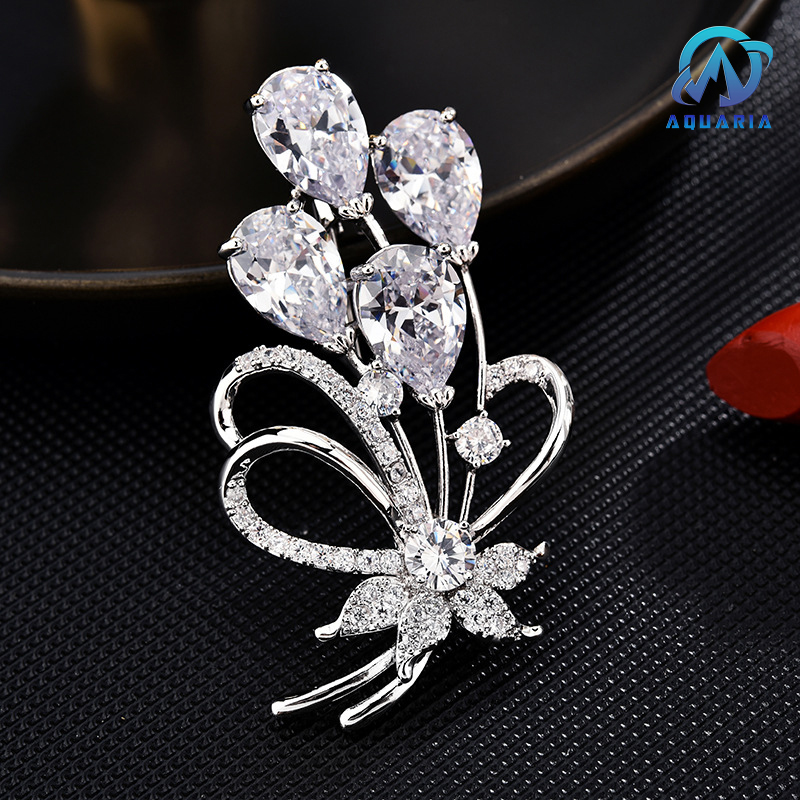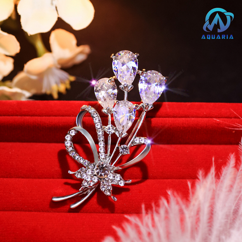 Trâm Cài Áo Nữ Quà Tặng Bó Hoa Đính Đá Họa Tiết Nơ Sắc Sảo Trang Nhã Sang Trọng (Kèm Hộp)