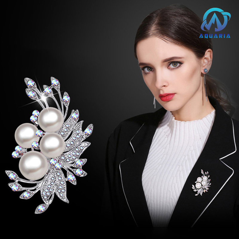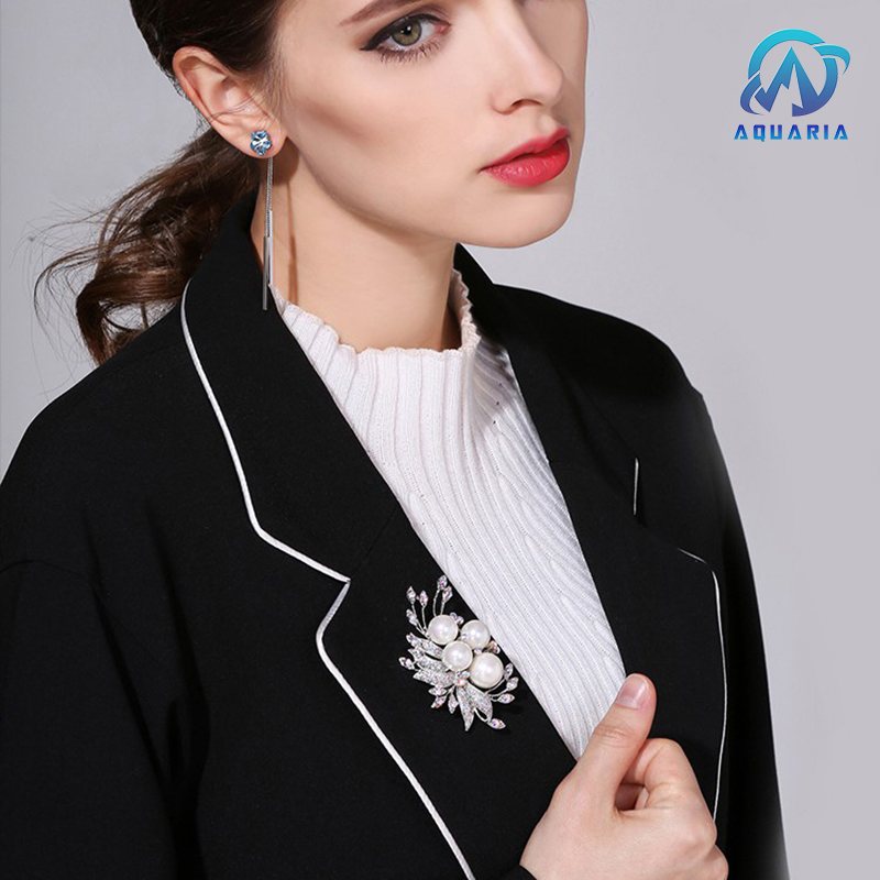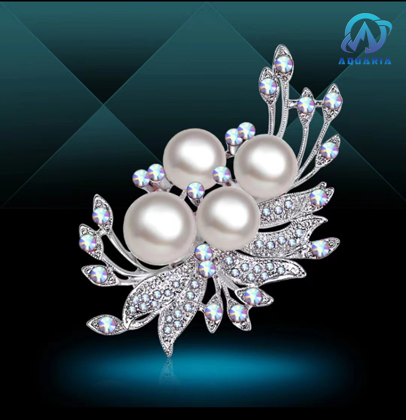 Trâm Cài Áo Nữ Quà Tặng Ngọc Trai Đính Đá Trang Nhã Sang Trọng (Kèm Hộp)