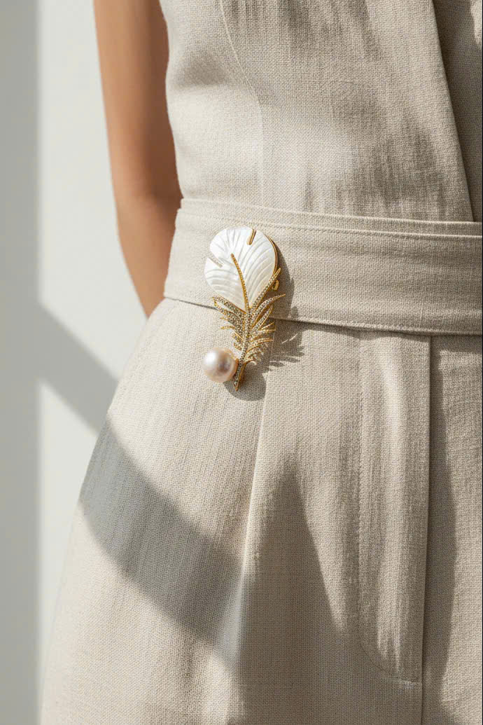 Từ nét đẹp duyên dáng, nhẹ nhàng của chiếc lông vũ, chiếc trâm cài áo ra đời. Một tác phẩm nghệ thuật thăng hoa, thể hiện vẻ đẹp của sự thanh thoát và quý phái. Trong trang sức, lông vũ (feather) là biểu tượng vượt thời gian của sự tự do, tốc độ và kết nối với tâm hồn.