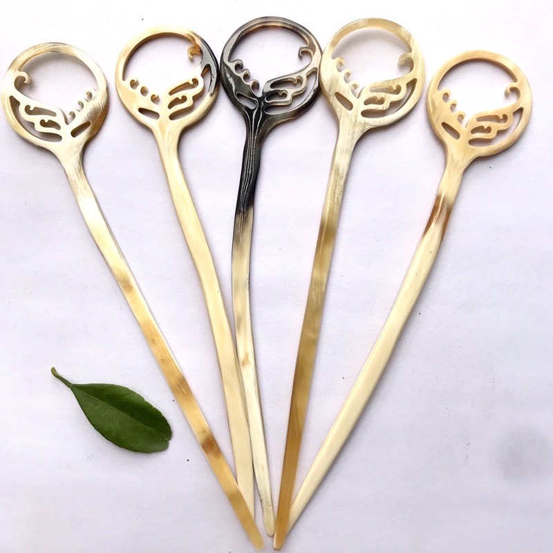 - Trâm cài tóc sừng thiết kế cổ điển, đeo tiện lợi và thoải mái.