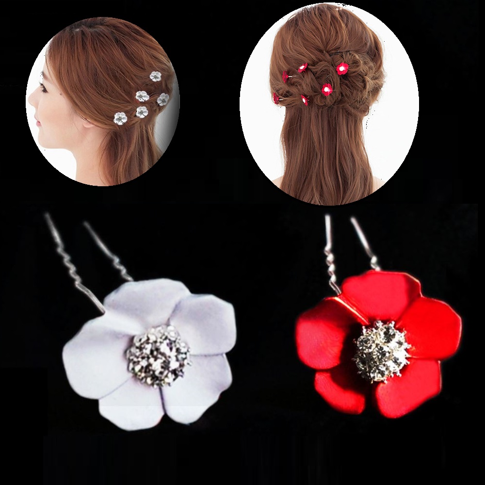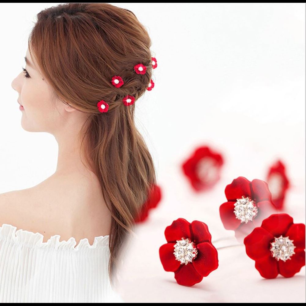 - Màu sắc: trâm cài màu bạc, hoa trắng hoặc hoa đỏ