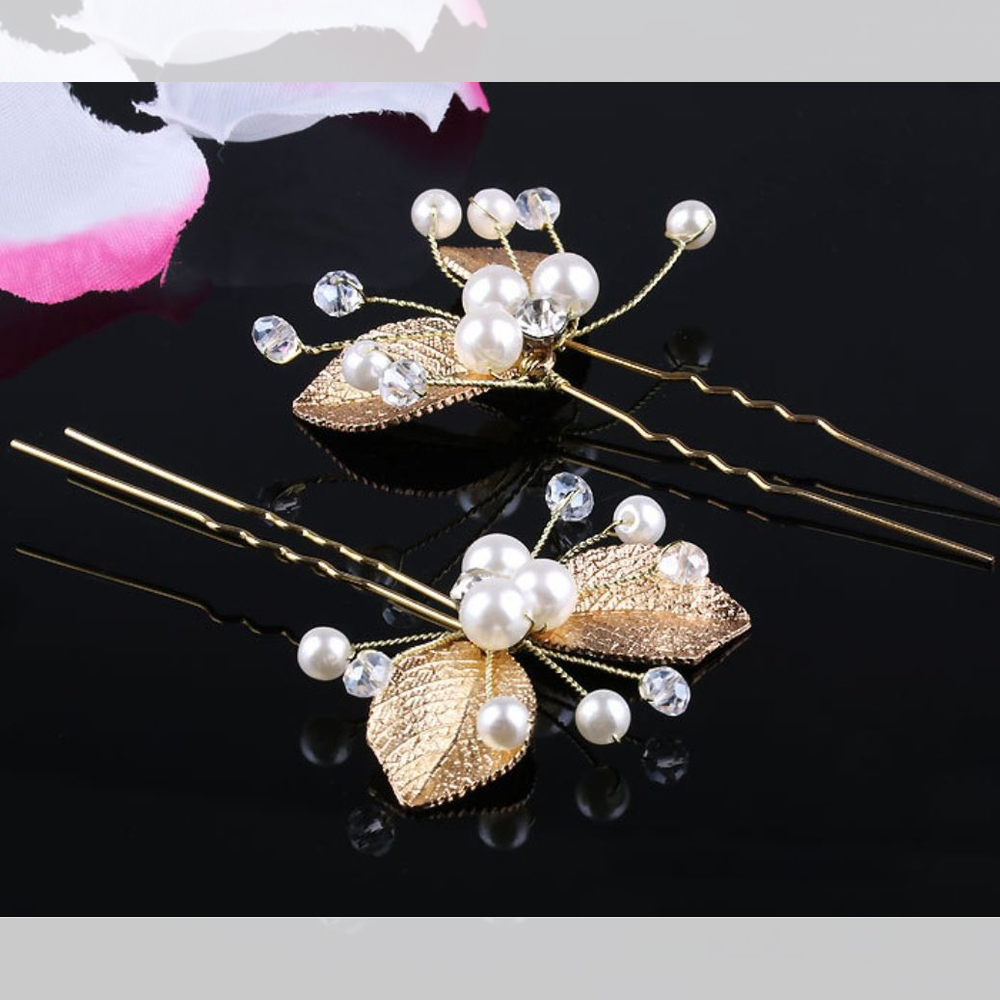 TRÂM CÀI TÓC MỸ KÝ LÁ VÀNG ĐÍNH HẠT CƯỜM