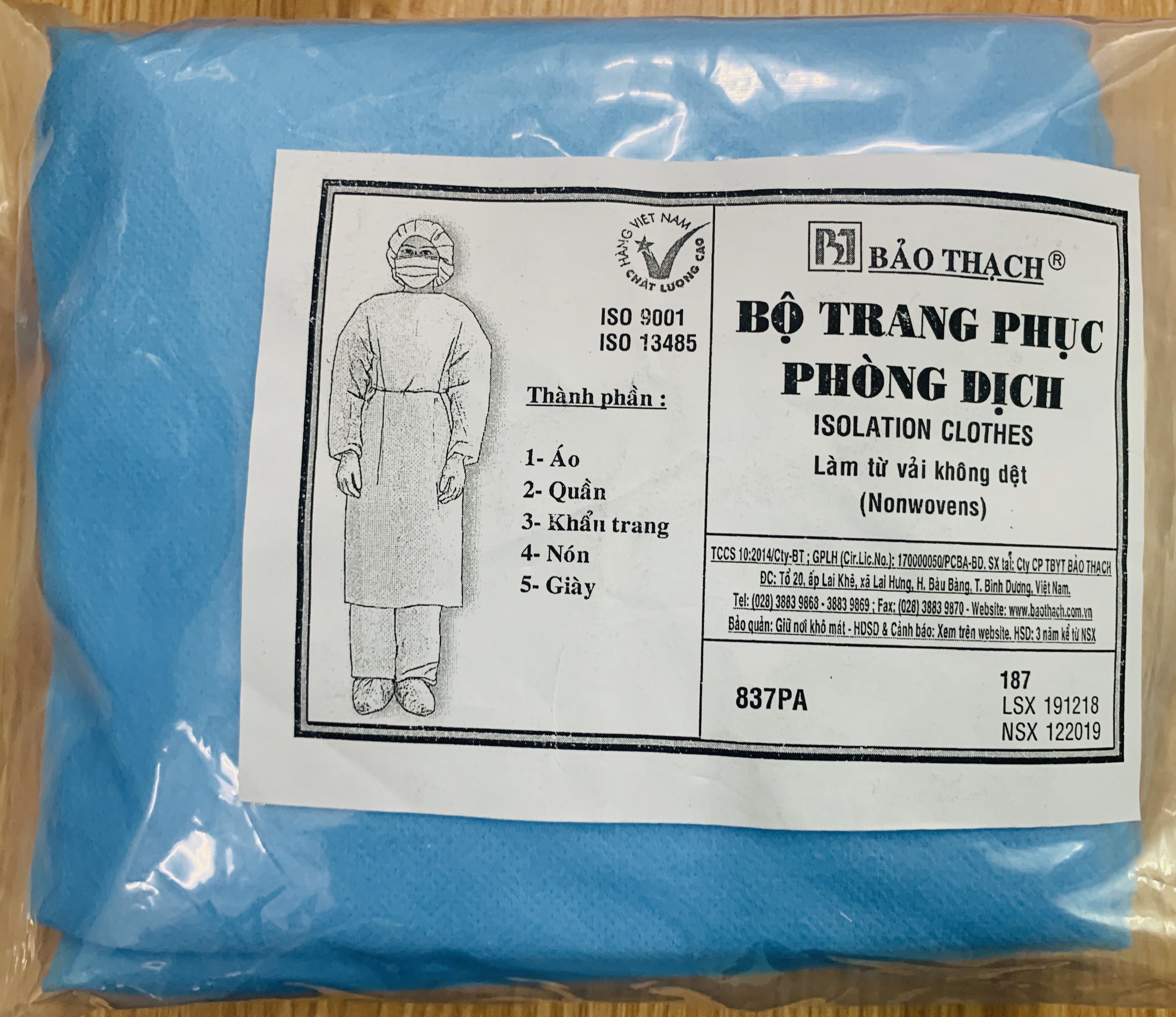 Bộ Trang Phục Phòng Dịch 5 món được đóng gói trong 1 bao nhựa, tiệt trùng gồm: