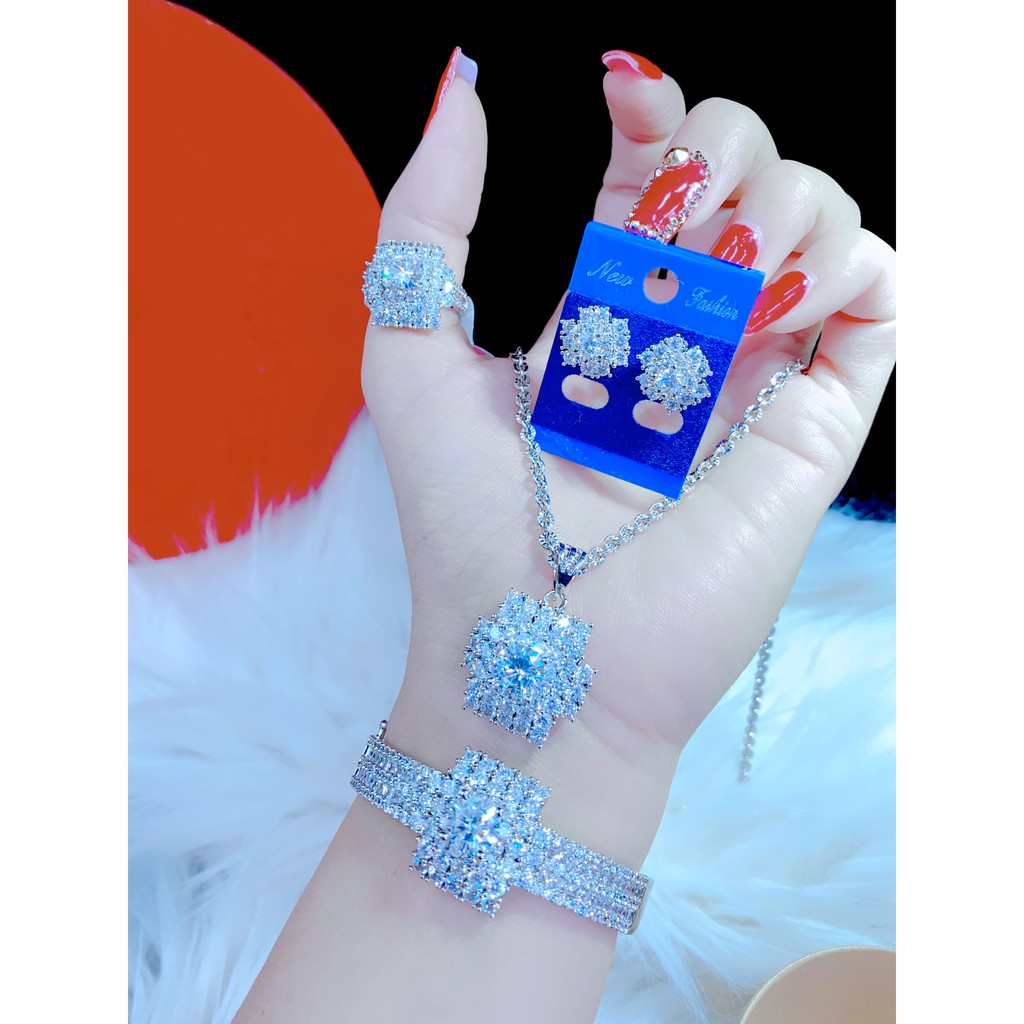 Giới thiệu Bộ Trang Sức 5 Món Đá Màu Trắng Phong Thủy Đeo Đi Tiệc Xinh Xắn Sang Trọng Có Đủ Size
