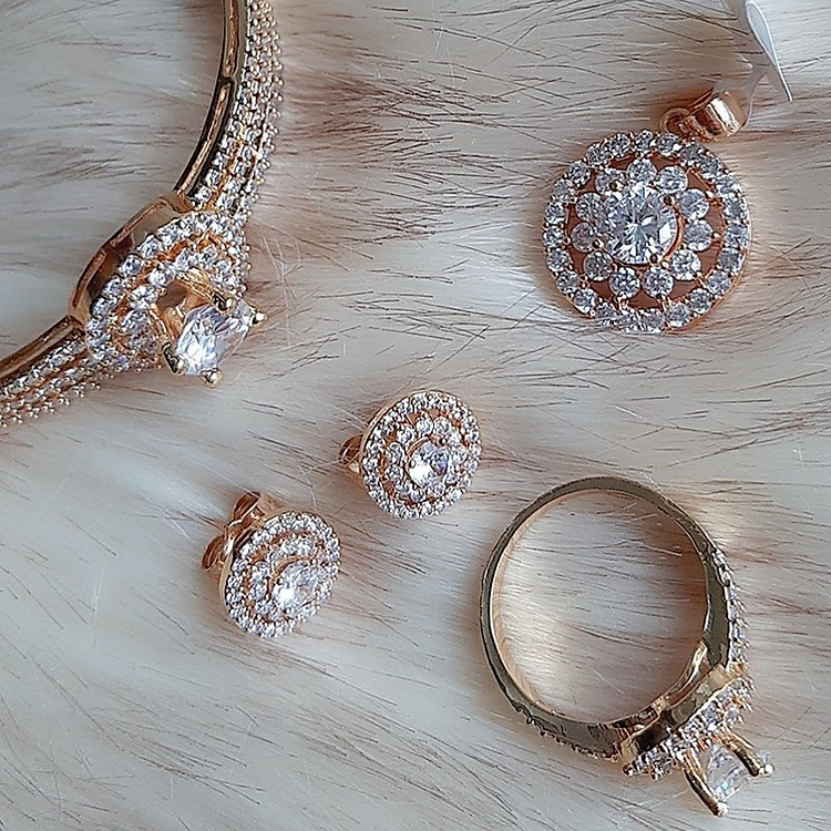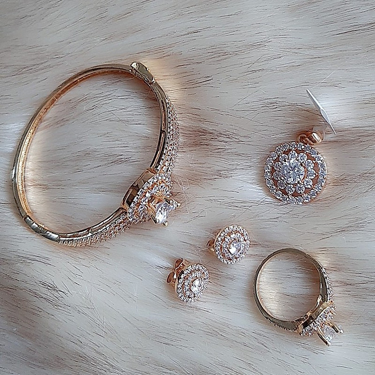 Giới thiệu Bộ trang sức, Bộ trang sức nữ, Bộ trang sức 4 món nạm đá cao cấp BHB162