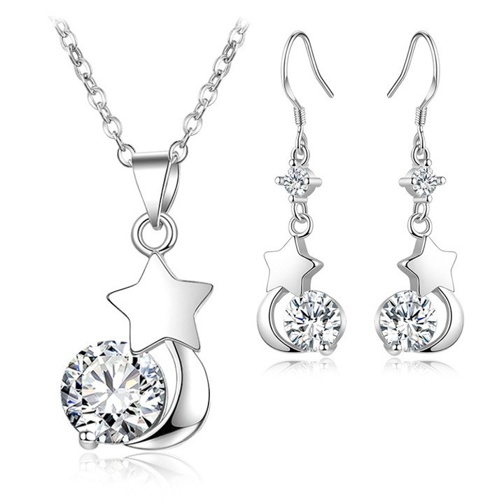 | Kích thước | Kích thước: Dây chuyền dài 45cm, mặt dây 24x11,5mmBông tai kích thước xấp xỉ 40mm x 11,5mm |