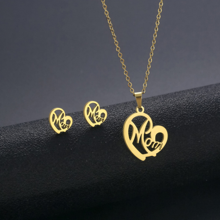 Giới thiệu Bộ Trang Sức Đẹp Titanium Nữ Giá Rẻ Trái Tim Và Chữ Mom - Đảm Bảo Không Đen, Không Rỉ Sét Vĩnh Viễn - V44-2