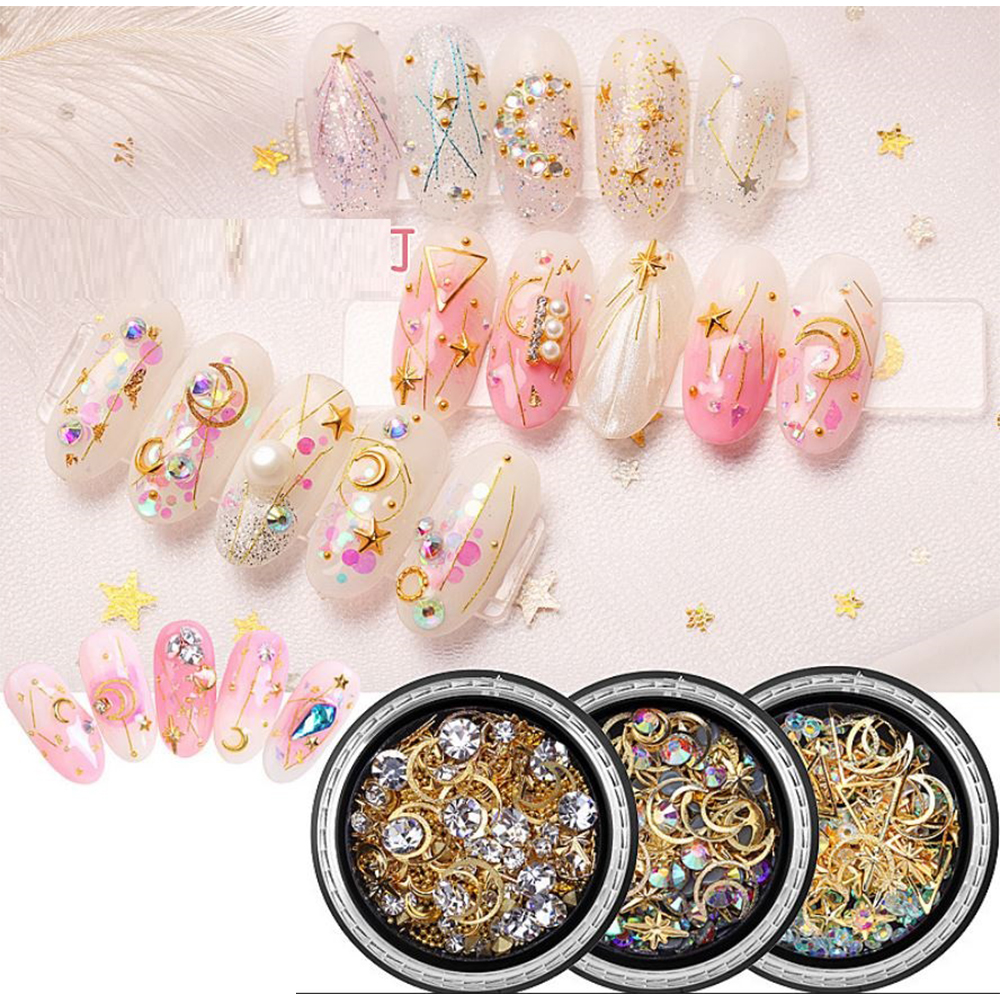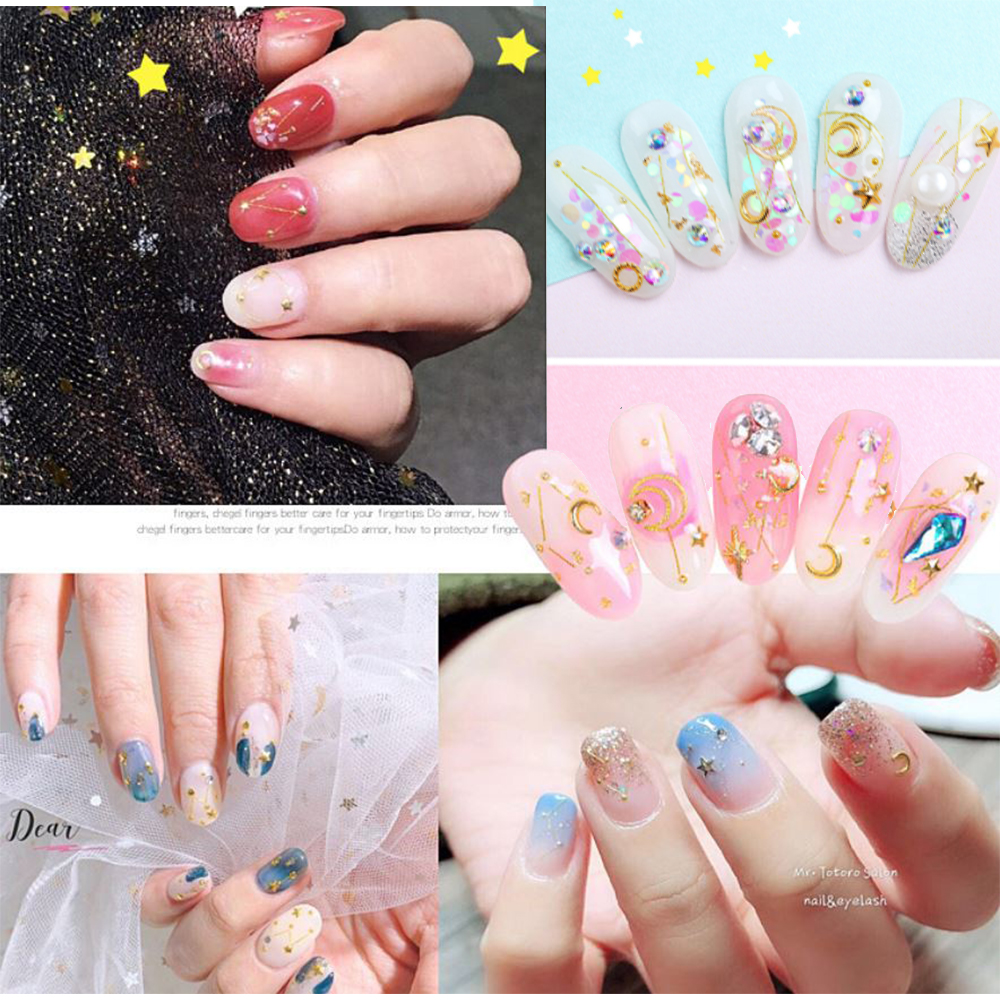 Được thiết kế theo nhiều hình dạng Trăng Sao lấp lánh, kích thước đa dạng để dễ dàng thực hiện gắn móng, tạo nên các bộ nail nghệ thuật