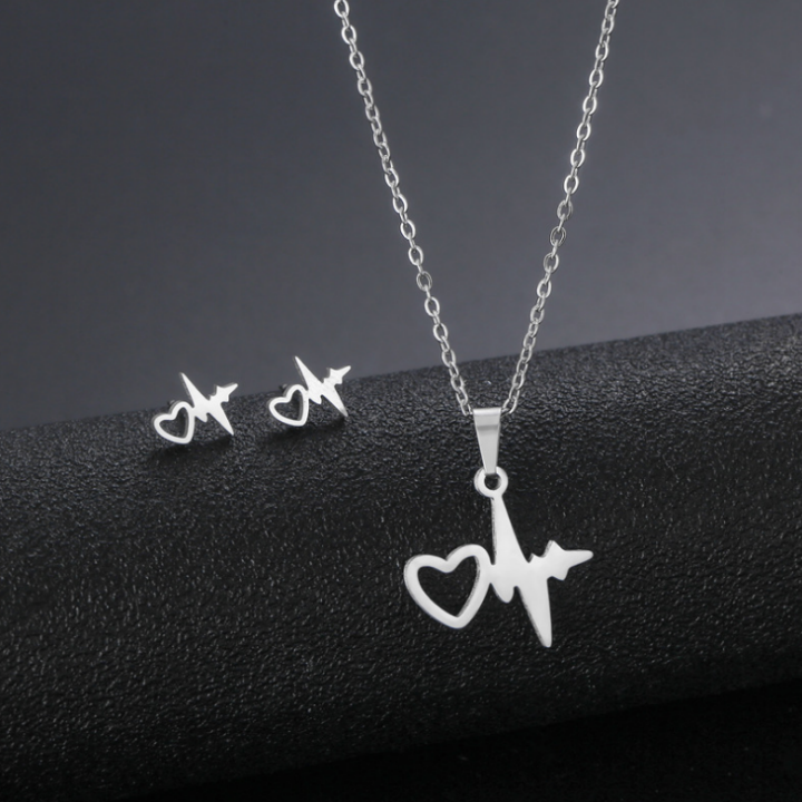 Giới thiệu Bộ Trang Sức Giảm Giá Titanium Nữ Đẹp Trái Tim Và Nhịp Tim Cách Điệu - Đảm Bảo Không Đen, Không Rỉ Sét Vĩnh Viễn - TV48