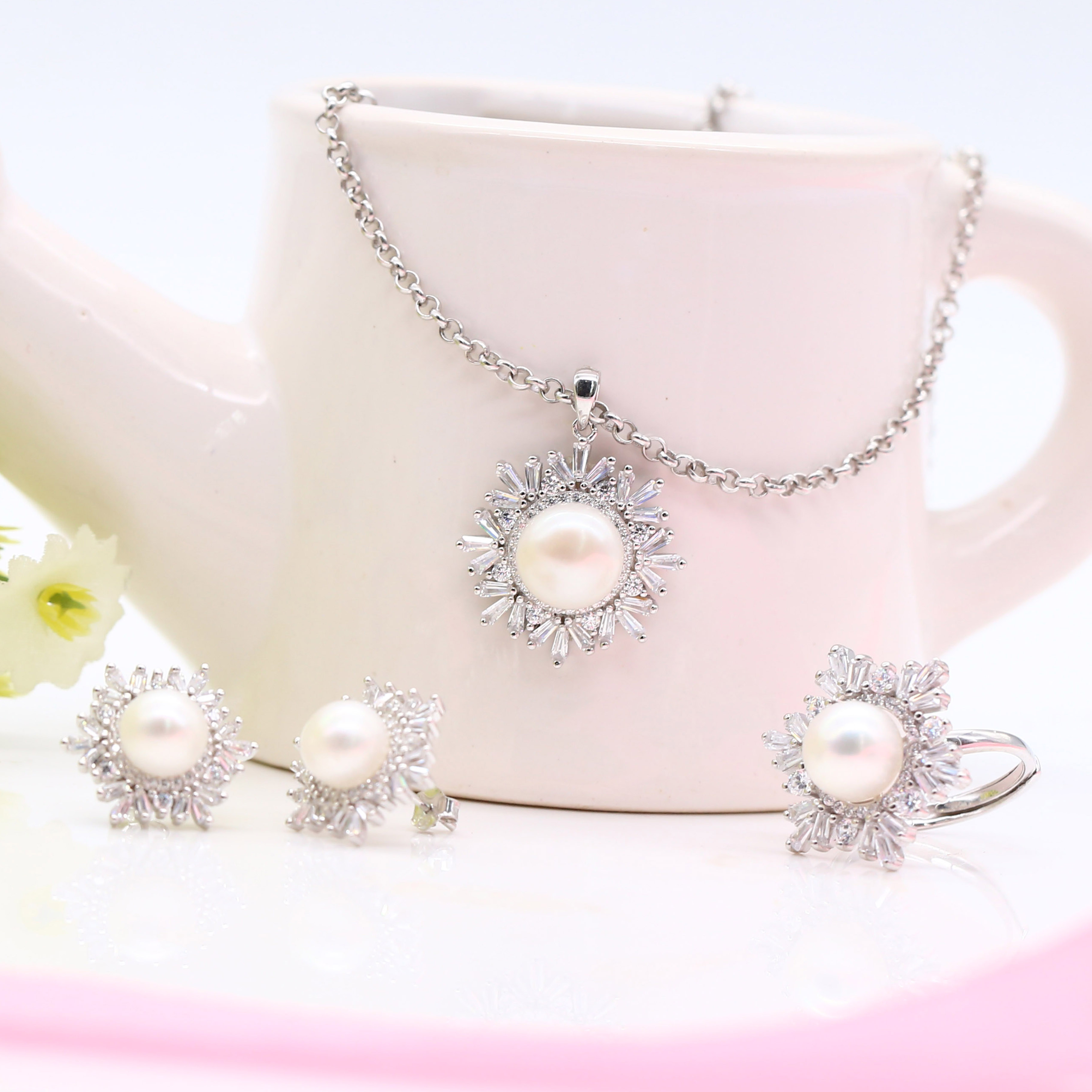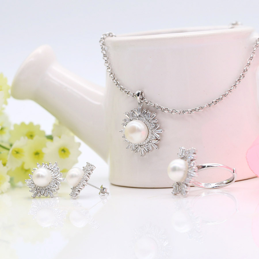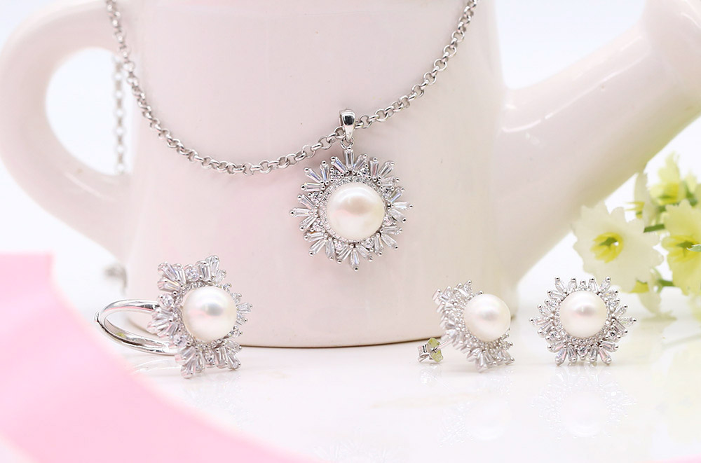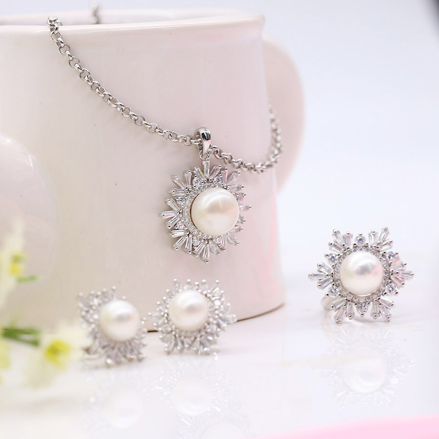 - Bộ sản phẩm gồm: nhẫn + dây chuyền + bông tai