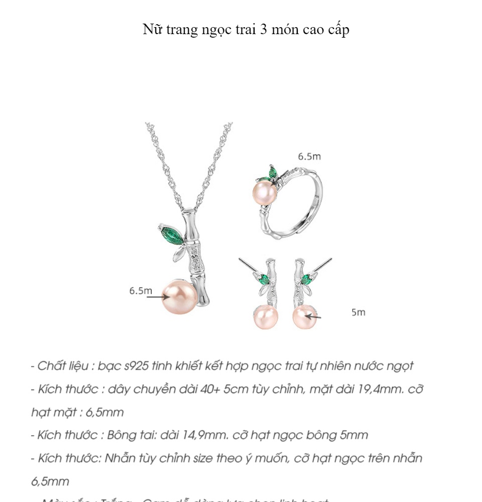 Bộ Trang Sức Nữ Bạc Cao Cấp 3 Món, Nữ Trang Bạc Thiết Kế Khóm Trúc Tinh Tế Gắn Ngọc Trai Tự Nhiên Sang Trọng - BNT2740 - Bảo Ngọc JewelryChất liệu: Bạc s925 tinh khiết kết hợp ngọc trai tự nhiên nướ...