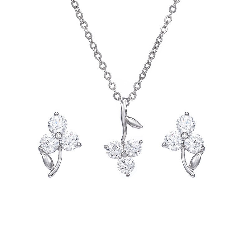 Giới thiệu Bộ Trang Sức Nữ Hoa 3 Cánh May Mắn, Mạ Vàng Trắng, Trang Sức Xuping Chính Hãng, XPBTS08