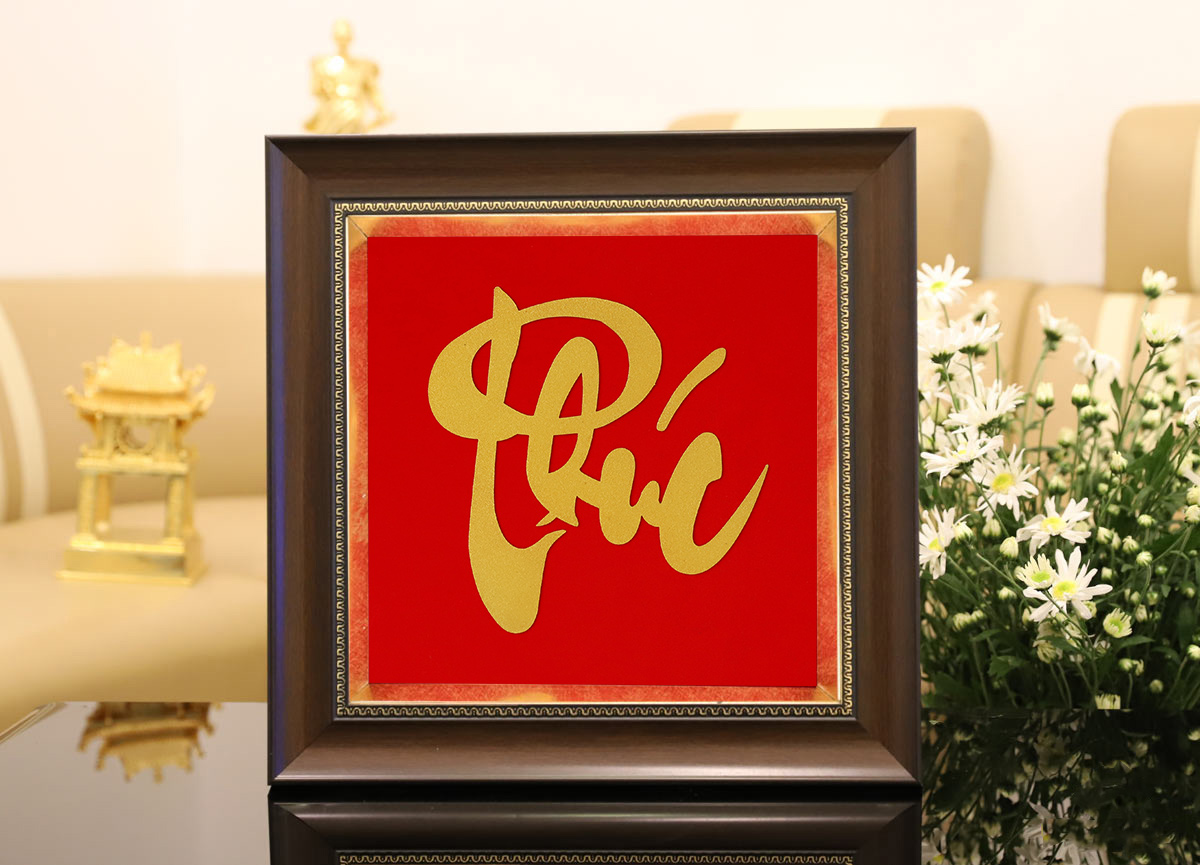 Tranh chữ Phúc do Golden Gift Việt Nam chế tác được mạ vàng thật bằng phương pháp điện phân