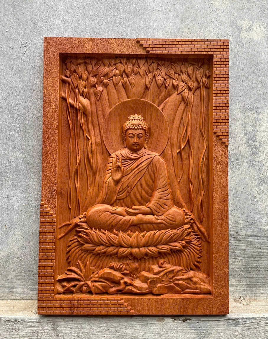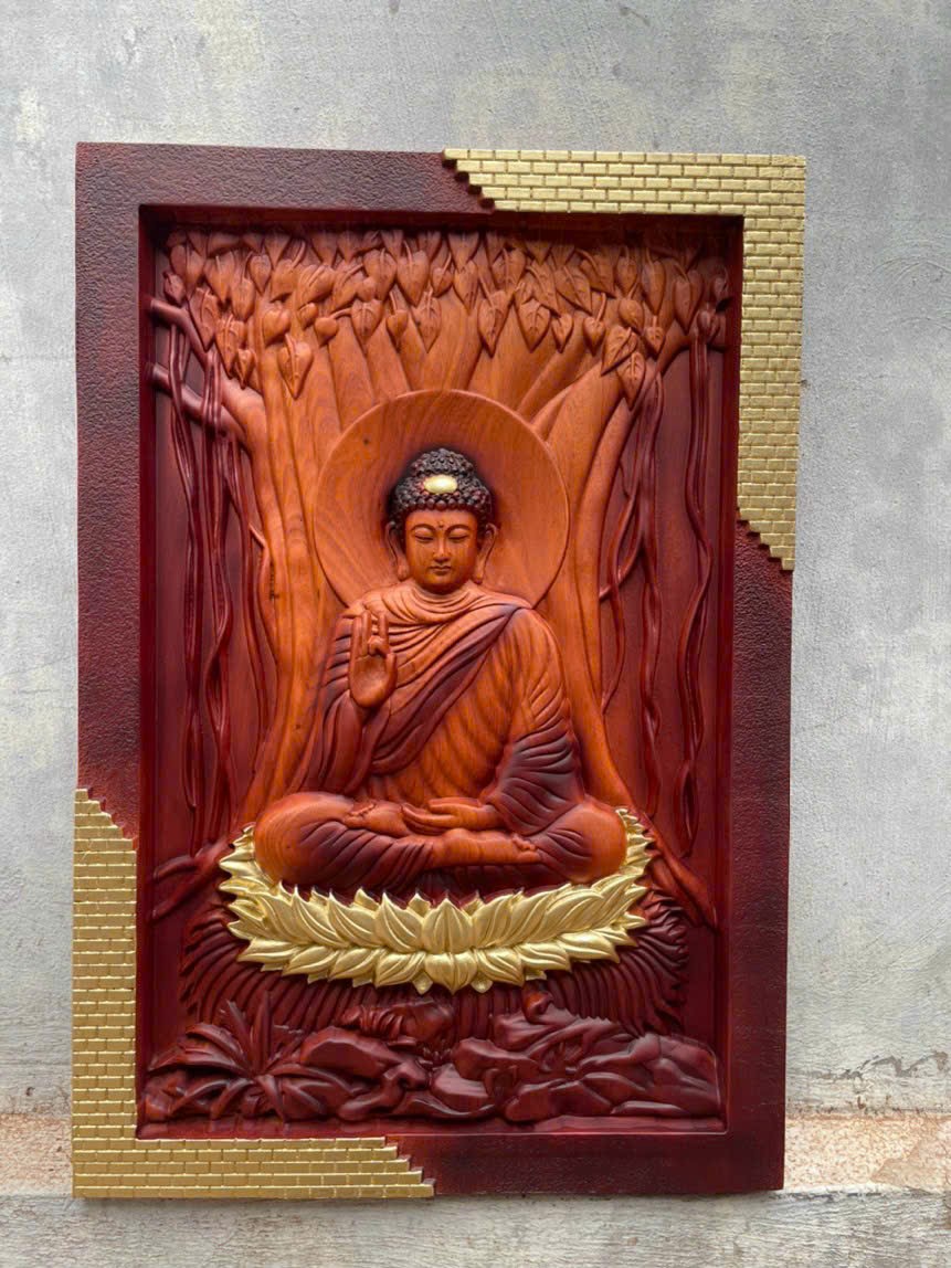 _ Tranh điêu khắc phật thích ca được làm bằng chất liệu gỗ hương đá tự nhiên 100%