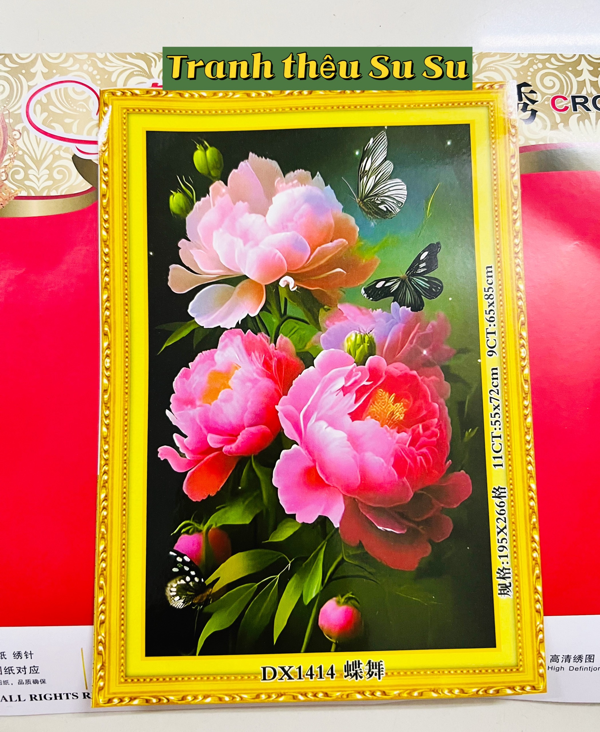 Tên tranh: Tranh thêu kín Hoa mẫu đơn DX1414