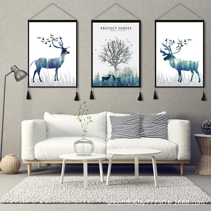 Bộ tranh treo tường 3 bức kèm : thanh treo + dây treo + đinh