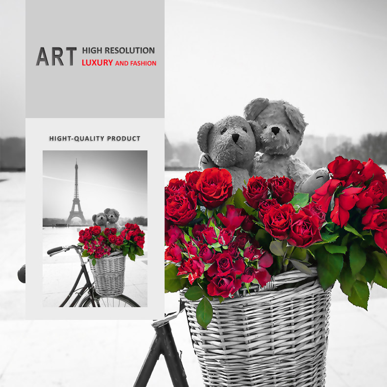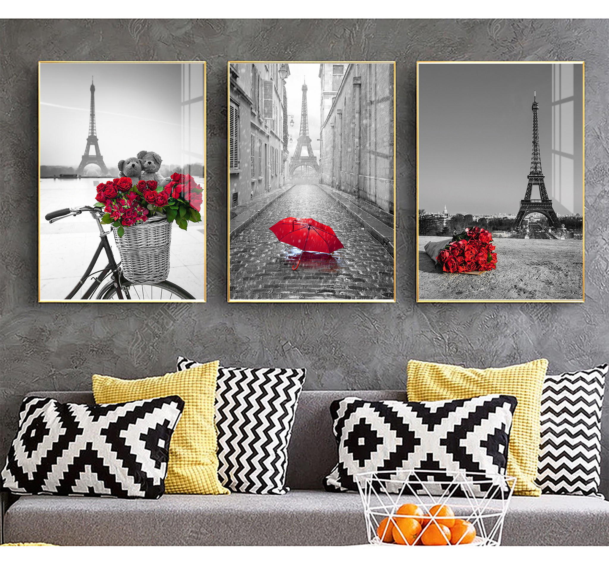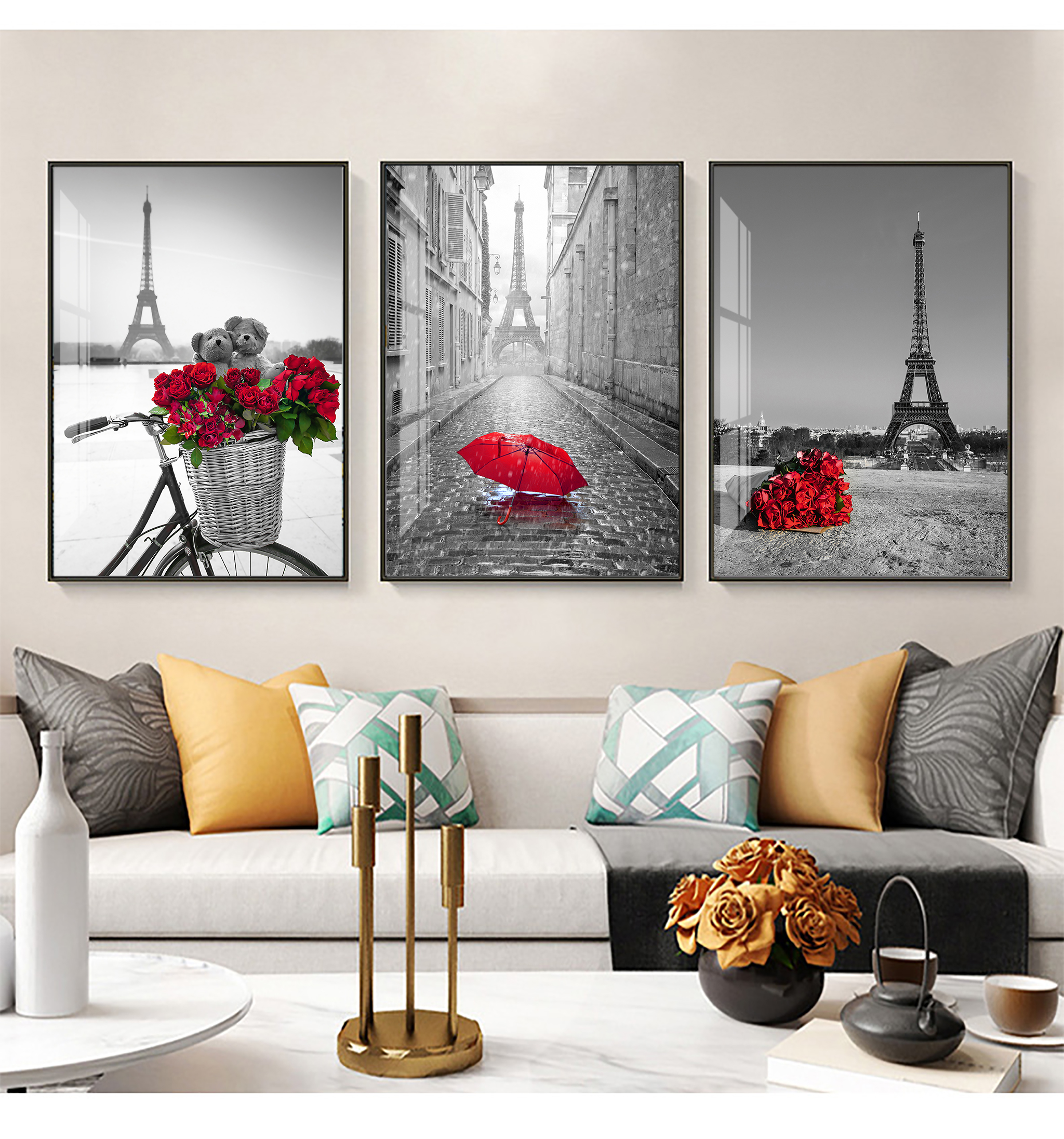 Giới thiệu Tranh treo tường Mica Khung nhôm 3 bức Tháp Eiffel và hoa hồng Hiện đại tại Tây Ninh