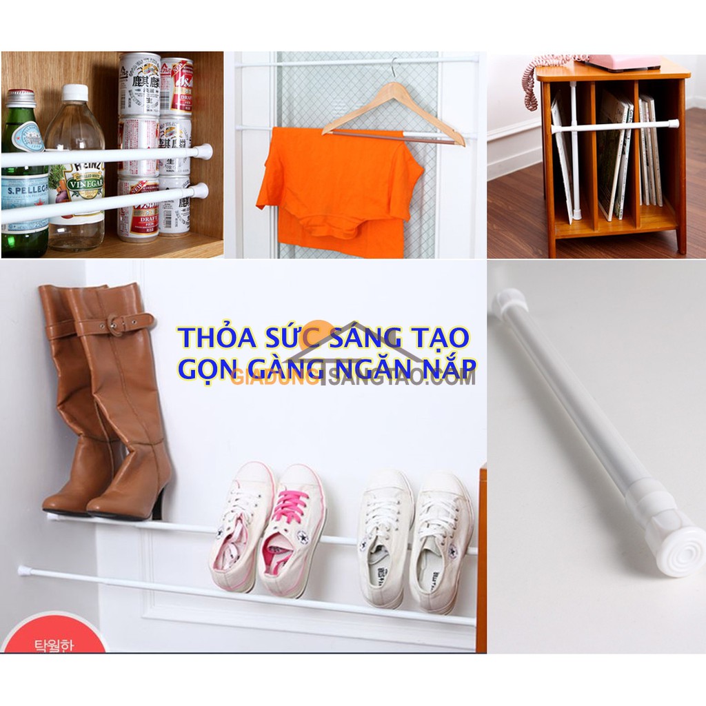 Nhỏ mà có võ, với thanh treo đa năng không cần bắt vít sơn tĩnh điện có thể kéo ra thu vào tùy ý ( tùy theo kích thước bạn chọn ) bạn có thể thỏa sức sáng tạo để sử dụng từ tủ quần áo tới kệ giày, từ phòng ngủ cho tới nhà tắm, như nhà bếp cho tới ban công, cửa chính hoặc cửa sổ... Lắp đặt cực kỳ dễ dàng ai cũng có thể làm được và đặc biệt là không cần phải khoan đục bắt vít...